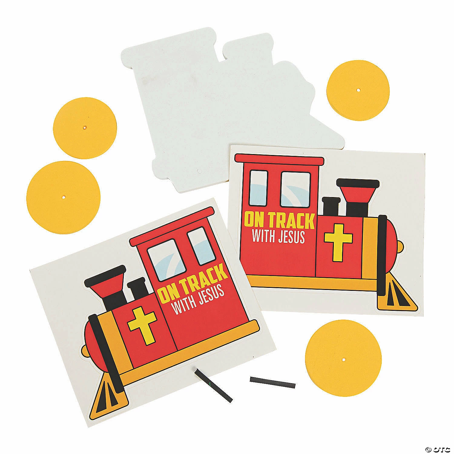 Kick start your Railroad VBS theme with this lovely religious craft for kids! With stickers that state, “On track with Jesus,” it fits a Railroad Vacation Bible School theme perfectly. You can also use it for Sunday School arts and crafts activities. Includes foam pieces, wooden dowels and stickers. 4 3/4″ x 4″ All craft kit pieces are pre-packaged for individual use. Kits include instructions. Makes 12. ยฉย OTC