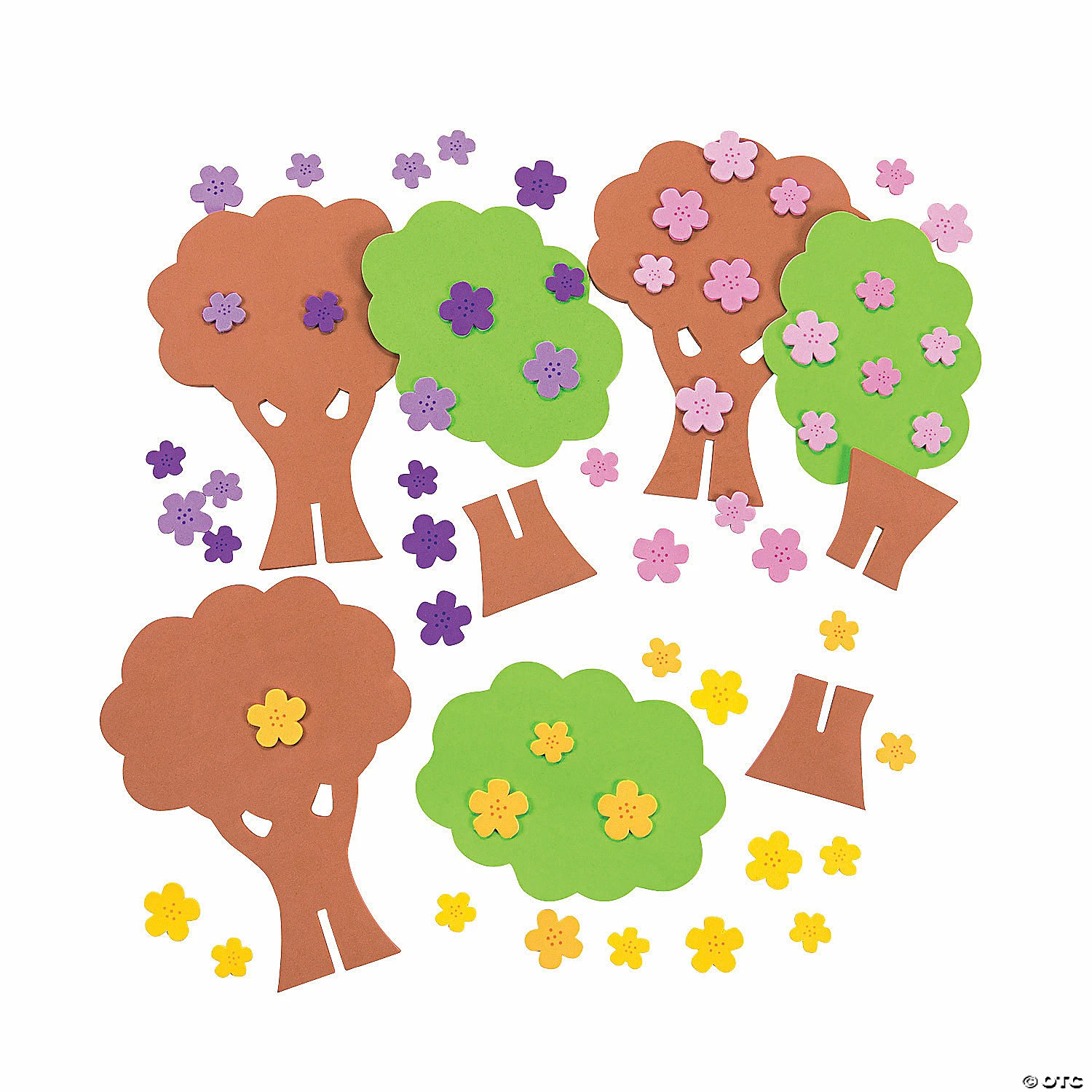 Welcome spring with this fun craft activity for kids! Perfect for art class at school or daycare, or make it part of your science lesson plans talking about the yearly cycles of plants and trees. Includes self-adhesive foam pieces and foam cutouts. 6″ x 2 1/4″ x 8″ Makes 12. All craft kit pieces are pre-packaged for individual use. Kits include instructions. ยฉ OTC3D Foam Spring Tree Kit Instructions