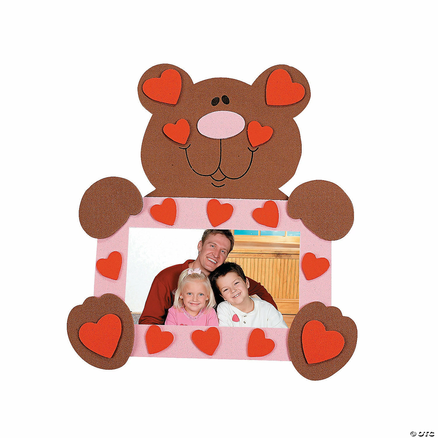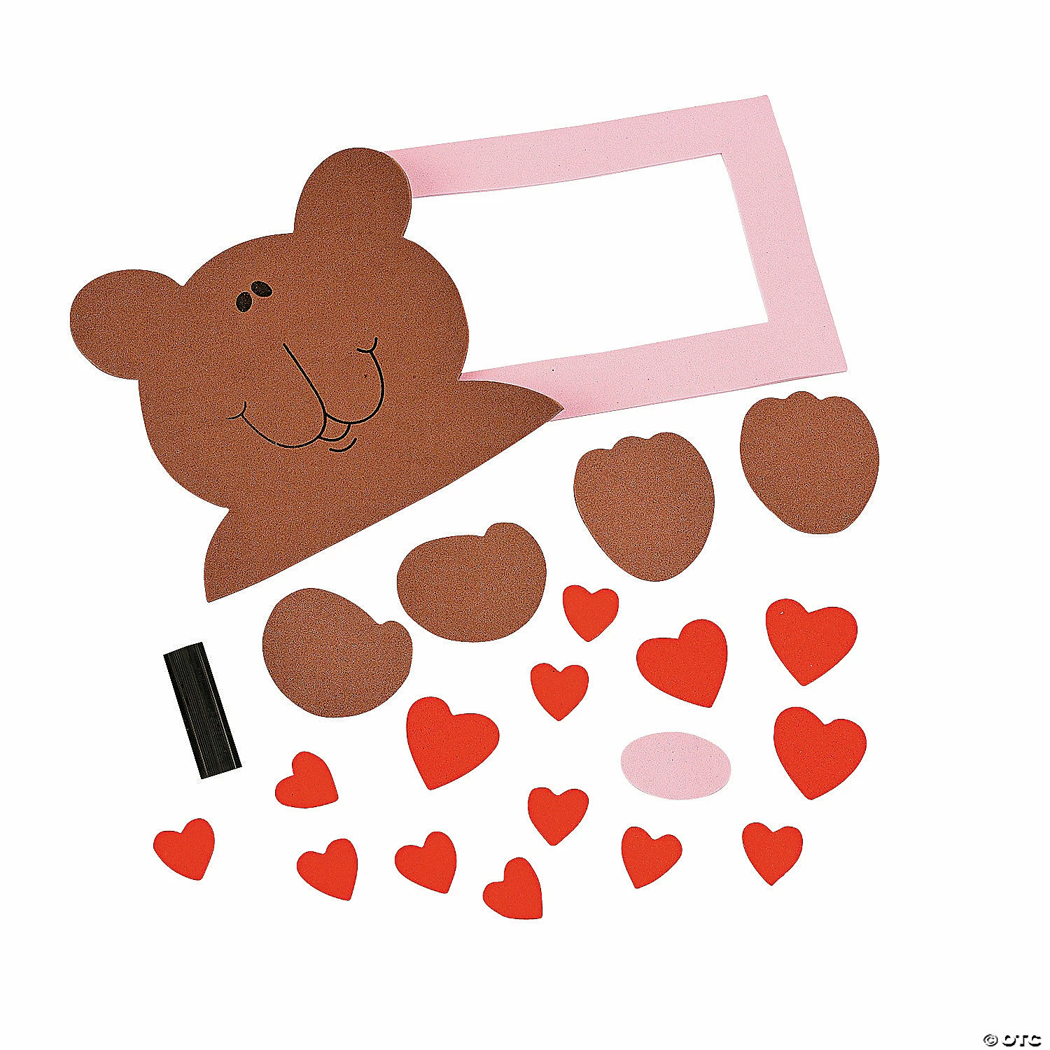 Bear Picture Frame Magnet Craft Kit. Frame your sweetie in a fun foam frame! 6 1/2″ x 8″; holds a 4 1/4″ x 2 1/2″ photo. All craft kit pieces are pre-packaged for individual use. Magnets are packaged separately. Do not discard. Kits include instructions and extra pieces. We recommend using foam glue, sold separately online. Β© OTCBear Picture Frame Magnet Craft Kit Instructions