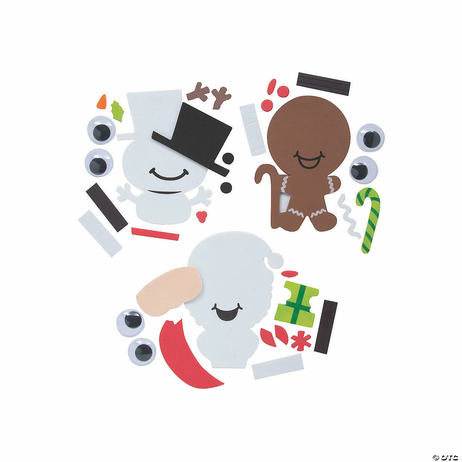 Just when you thought Christmas characters couldnโt get any cuter, here comes these adorable, big-eyed characters! Santa, a gingerbread man and a snowman are cute, funny Christmas characters kids can put together with this simple, peel-and-stick craft kit in the classroom or at a holiday party. Kids can display the finished character on a metal surface since these include magnets or they can gift the finished magnets to a loved one as a Christmas gift. Includes self-adhesive foam pieces and plastic googly eyes 3 1/2″ x 4 1/2″ Makes 12. All craft kits are pre-packaged for individual use. Magnets are packaged separately. Do not discard. Kits include instructions. ยฉ OTC