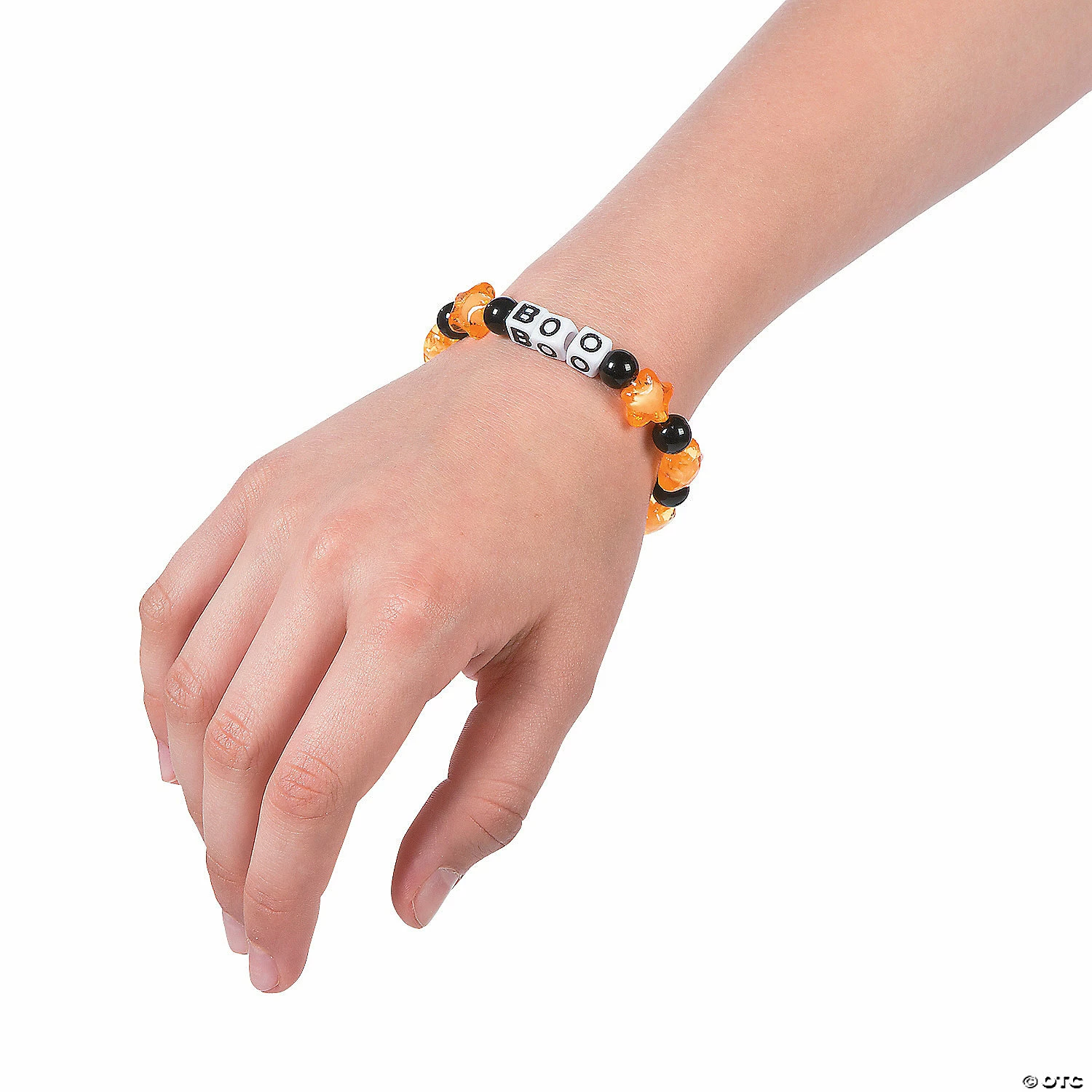 Create the perfect Halloween costume accessory with this Boo Beaded Bracelet Craft Kit. Featuring an assortment of black and orange beads, string them together to spell the word βBooβ on the stretchy cord. The perfect Halloween activity for school or home, kids will love sporting these bracelets as they parade around the neighborhood in their Halloween best. Includes plastic beads on a 16″ stretchy cord. All craft kit pieces are pre-packaged for individual use. Kits include instructions and extra pieces. Makes 12.