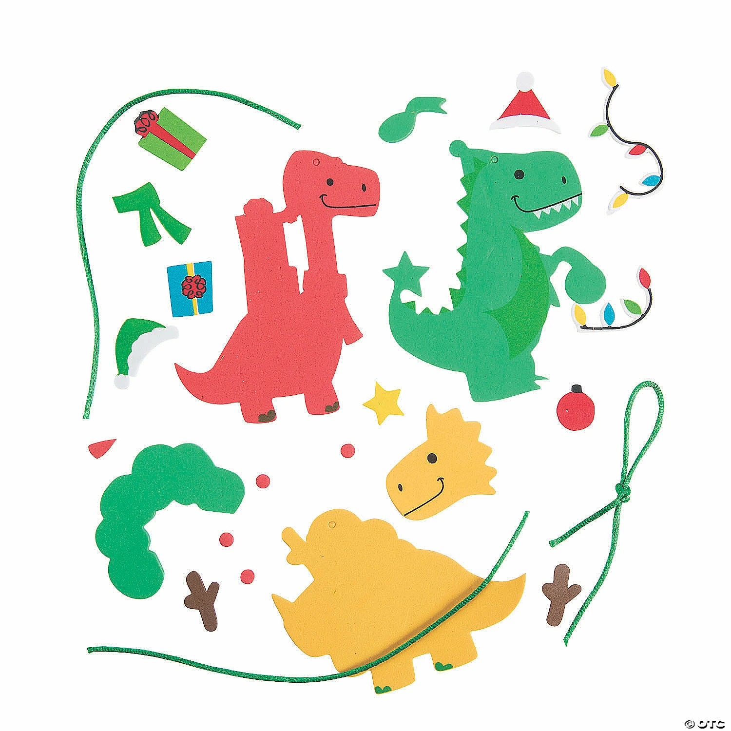 Dino-mite activities for kids, these Christmas crafts are sure to get kids in the holiday spirit. The assortment of dinosaur ornaments includes three dinosaur designs decked out in holiday accessories. Ready to get crafty? Set up the dinosaur crafts at a kidsโ Christmas party, use them as stocking stuffers or include them in holiday party favor bags. Includes self-adhesive foam pieces and satin cording. 3 1/2″ – 4″ x 3″ – 4 1/4″ Makes 12. All craft kit pieces are pre-packaged for individual use. Kits include instructions. ยฉ OTC