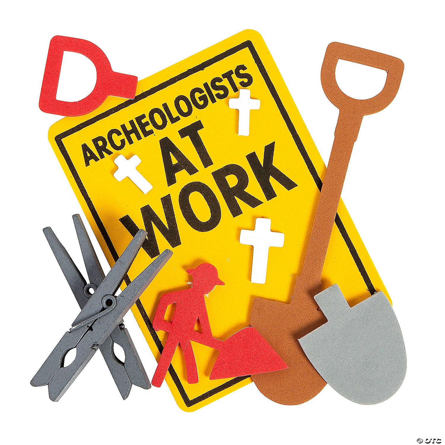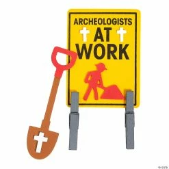 This fun, religious craft for kids turns into a caution sign! As part of our Dig VBS theme, it is printed with crosses and “Archaeologists at work.” A great addition to Vacation Bible School activities, kids will love the on-theme fun! Includes self-adhesive foam pieces and wooden clothespins. 5 1/2″ x 7 1/2″ Makes 12. All craft kit pieces are pre-packaged for individual use. Kits include instructions. ยฉ OTCDIG VBS CLOTHESPIN Instructions