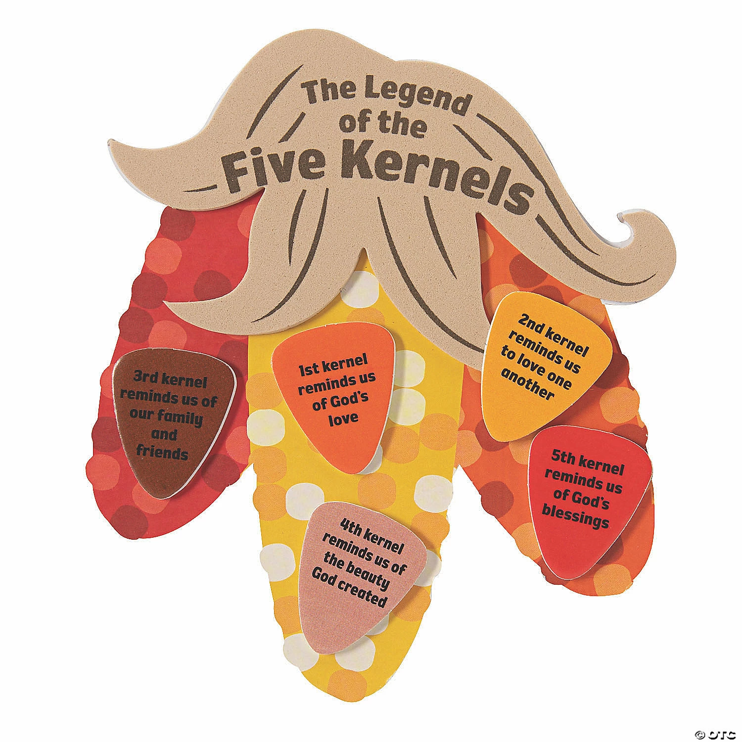 This Thanksgiving craft kit for kids is both fun and informative! Can be used as a Sunday School project or parochial school activity that teaches gratitude and reminds children to give and receive love. Includes self-adhesive foam pieces. 4 1/4″ x 5″ Makes 12. All craft kit pieces are pre-packaged for individual use. Magnets are packaged separately. Do not discard. Kits include instructions. ยฉ OTCFaith Calico Corn Magnet Craft Instructions