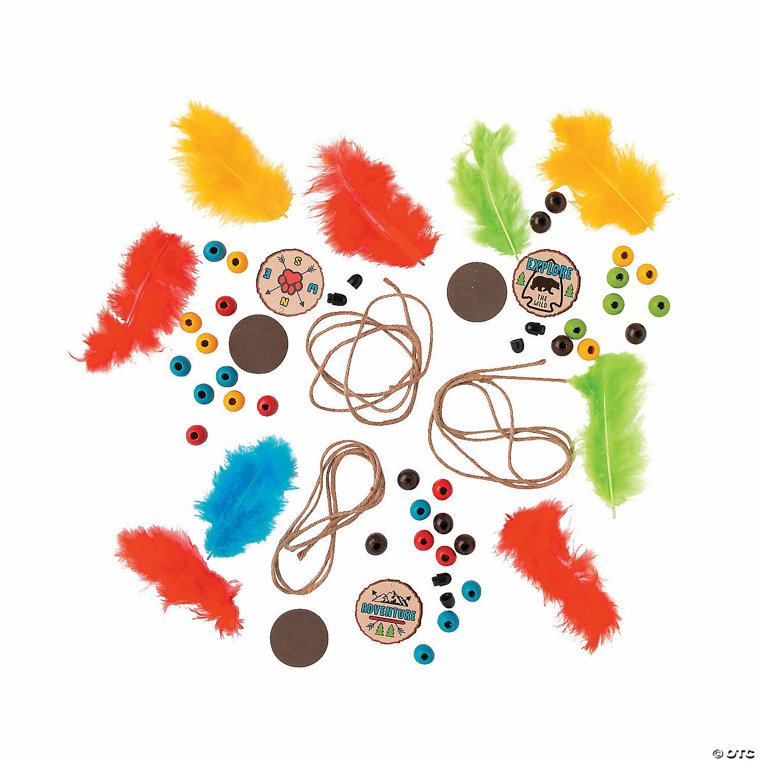 This outdoors-inspired kidsβ craft is a little rough around the edges, and we like it that way! Featuring wooden beads, colorful feathers and a nature-themed charm, the completed necklaces really make a statement! Kids will love putting the necklaces together as a VBS craft activity or day camp DIY project! Includes 1/2″ wooden beads, 1 3/4″ foam charm, feathers and 30″ hemp breakaway cord. Makes 12. All craft kit pieces are pre-packaged for individual use. Kits include instructions. Β© OTCFeather Necklace Craft Kit Instructions