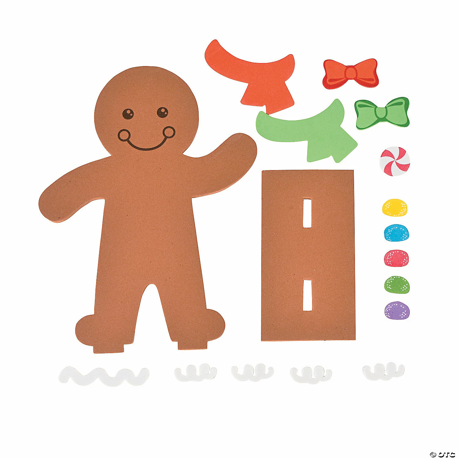 The Foam Gingerbread Stand up Craft Kit includes a foam gingerbread man, self-adhesive decorative pieces and a stand. Assemble them with your family and then stand them up around the house. They’re fun for the kids and decorative for the house. Each unit can make 24 gingerbread men that stand at 5 1/4″ x 2″ x 7″. Β© OTCFoam Gingerbread Stand Up Craft Kit Instructions
