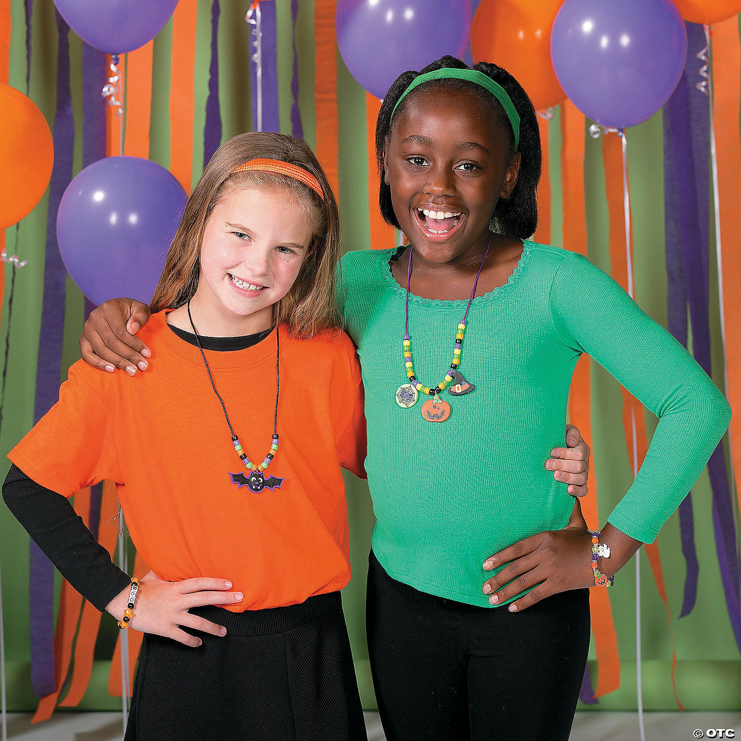 Halloween Charm Bracelet Craft Kit. Gear up for Halloween! Halloween Charm Bracelet Craft Kits include jack-o’-lantern, ghost and witch hat charms, silver separators and purple, orange and yellow beads. All craft kit pieces are pre-packaged for individual use. Kits include instructions and extra pieces. Includes 1/4″ plastic beads and 1/2″ metal charms on a 14″ stretchy cord. Makes 12. Β© OTC