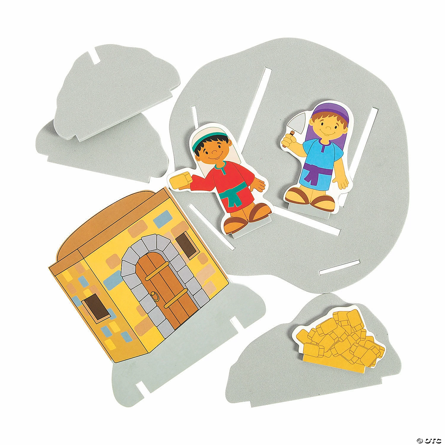 A wise man builds his house upon a rock and maintains a solid foundation of faith. Teach kids this valuable lesson with this hands-on Bible craft. Kids create a finished product that they will be proud to display at home. Great for Sunday School lessons or as a VBS craft, this fun project will help illustrate the principles taught by Jesus in the book of Matthew. Foam. 7 1/4″ x 7″. All craft pieces are pre-packaged for individual use. Kits include instructions. ยฉ OTC
