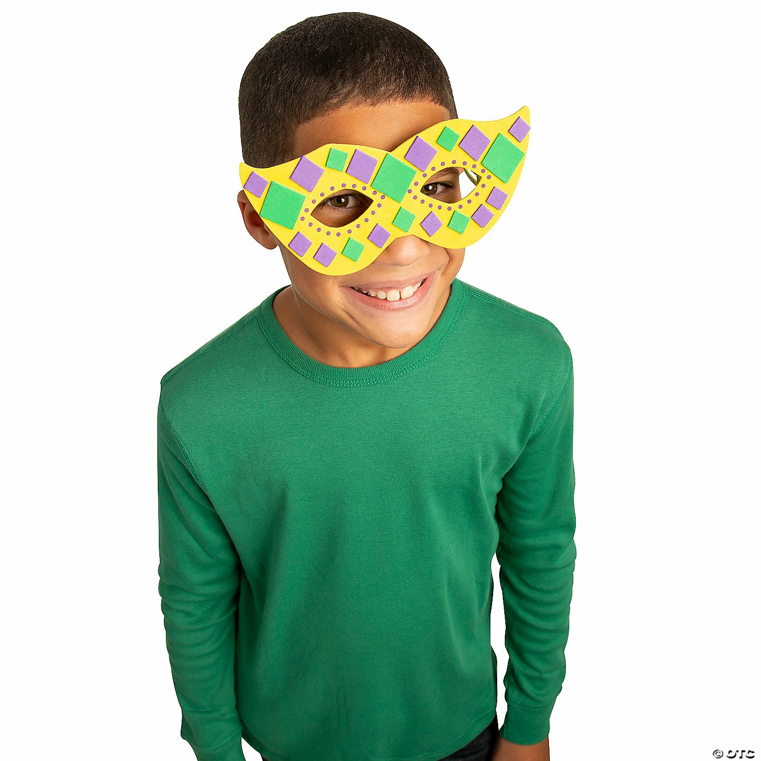 Wearing a Mardi Gras mask can be tricky for some kids, but this fun craft kit makes it easy to help kids create Mardi Gras mask glasses that will stay put as they enjoy the celebration! Kids will be proud to create their own Mardi Gras wearables that feature the classic colors of green, yellow and purple. A fun Mardi Gras classroom craft, this kit is also a great choice for a kidsโ activity at a Mardi Gras celebration. Includes plastic glasses and self-adhesive foam pieces. 7″ x 3″ with 4 1/2″ ear pieces. Makes 12. All craft kit pieces are pre-packaged for individual use. Kit includes instructions. ยฉย OTC