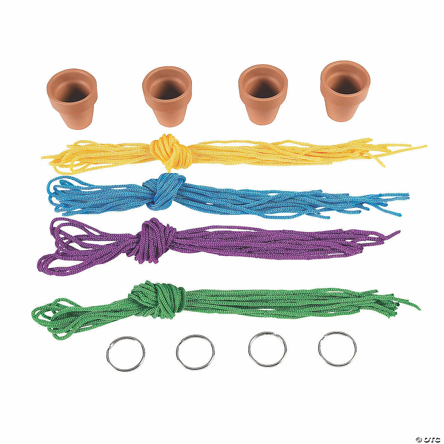 Macramé has never been easier to master than with this colorful hanging plant craft kit. Kids can create their macramé planters as a birthday party activity, in class or as a camp project, and then give the hanging plant holders as gifts or plant seedlings in them and hang them as home or classroom decorations. Each includes 8 pieces colored yarn, 1 3/4″ terra cotta pot and 1″ metal ring. Makes 12. 9 3/4″ All craft kit pieces are pre-packaged for individual use. Kits include instructions. © OTC