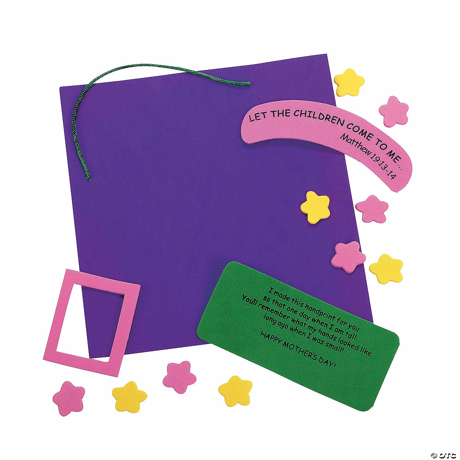 Make a special gift for mom for Mother’s Day! This foam craft kit is fun for schools, day cares and church groups! Trace each child’s hand on the foam and cut out to create the backdrop for the photo frame. All other pieces are pre-cut. Each is 4 1/2″ x 7 1/2″; holds a 1 1/4″ x 1 3/4″ photo. All craft kit pieces are pre-packaged for individual use. Kits include instructions and extra pieces.
