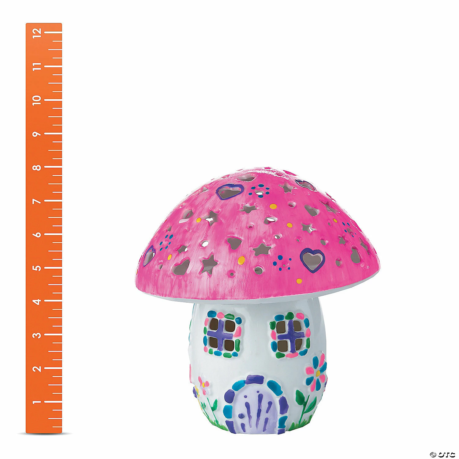 Through the simple craft of painting, you can transform a pretty, porcelain mushroom into a whimsical fairy home! Just paint and oven-bake your beautiful fairy tale cottage, and with the click of a button, sweet tea lights will cast an enchanting glow, welcoming fairies to come and stay. Hand paint a magical, porcelain fairy house accent lightโperfect for illuminating a bedroom nook or other special spot.โข Hand paint a magical, porcelain fairy accent light. โข Promotes creativity, self-expression, imagination and fine motor skills. โข Includes a porcelain fairy house, 2 battery-operated tea lights, 12 paints, 2 paintbrushes and an instruction guide.