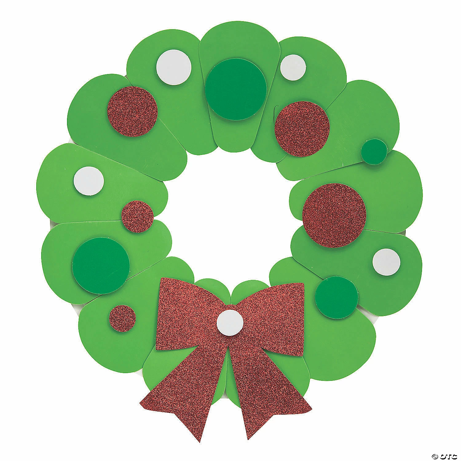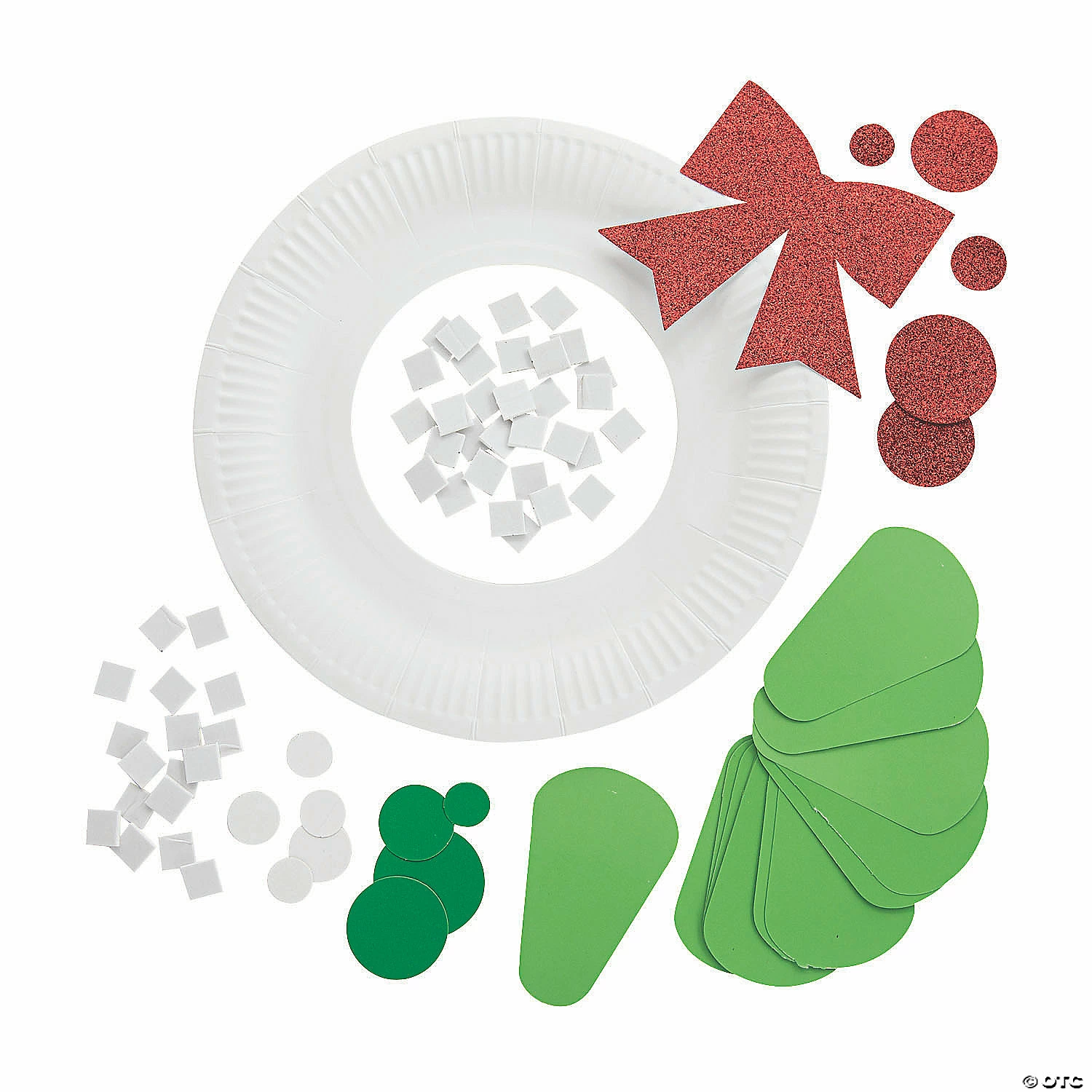 Transform a paper plate into something special for Christmas! This fun craft kit allows kids to create their own Christmas wreaths that they can then proudly display either in the classroom or at home. With no glue needed, this easy craft kit for kids doesnβt make a big mess and is easy to clean up afterward. Includes cardstock shapes and self-adhesive foam pieces. 10″ diam. Makes 12. All craft kit pieces are pre-packaged for individual use. Kits include instructions. Β© OTCPaper Christmas Wreath Craft Kit Instructions