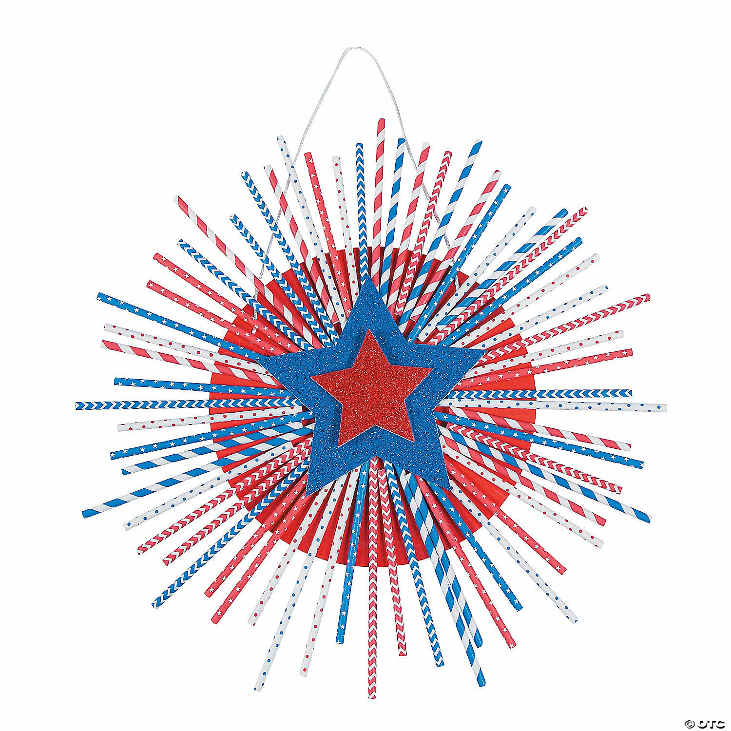 Add some star-spangled style to your home! An Uncle Sam-approved addition to Fourth of July crafts, these wreaths are easy to assemble but sure to dazzle like the brightest of fireworks. Little ones will have a blast making ‘em and parents will love displaying the finished project on their walls this summer! Includes self-adhesive foam pieces, paper straws and satin cording. 15” Makes 3. All craft kit pieces are pre-packaged for individual use. Kits include instructions. © OTC