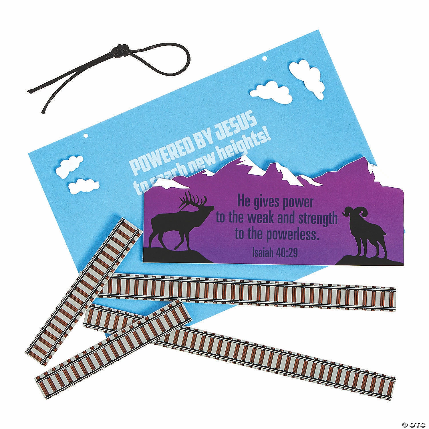 Kids at Railroad VBS will learn many valuable lessons in VBS, but the lesson of Isaiah 40:29 is a powerful lesson they can carry with them throughout life. This simple and fun VBS craft reminds kids of the power provided by Jesus. An easy craft that small kids will love, it will also be a favorite of VBS leaders because of the ease of the craft and the easy craft clean-up. Includes self-adhesive foam pieces and a satin cord. 8″ x 5 1/2″ Makes 12. All craft pieces are pre-packaged for individual use. Kits include instructions. © OTCRailroad VBS Sign Craft Kit Instructions