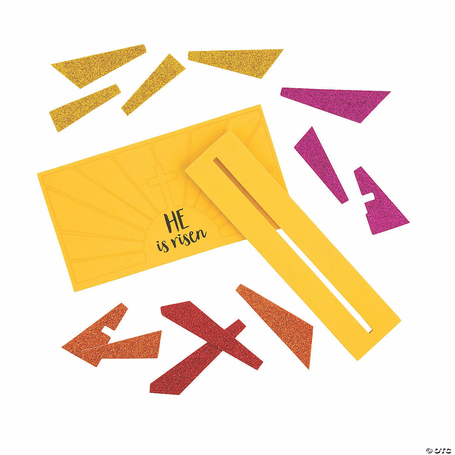 Celebrate Jesus and the sacrifice he made through creativity! A must-have addition to Easter crafts for kids, these mosaics feature a design of the rising sun, a cross and text that reads “He Is Risen”. Once completed, kiddos can easily display this in their bedrooms as an accent that reminds them of their faith and the true meaning behind Easter! Includes self-adhesive foam pieces. 8 1/2″ x 2″ x 4 1/4″ Makes 12. All craft kit pieces are pre-packaged for individual use. Glitter pieces are packaged separately. Kits include instructions. © OTCReligious Easter Mosaic Kit Instructions
