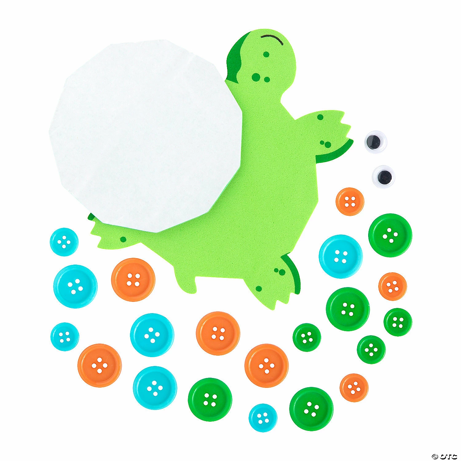 Itβs ok to catch these friendly little snappers! This turtle kit is a fun craft to do during summer camp or in the classroom. Have kids take a trip under the sea and create their own design for the turtleβs shell. Great for ocean-themed birthday parties and events too. Includes self-adhesive foam pieces, plastic buttons and googly eyes. 4 1/2″ x 5 1/2″ Makes 12. All craft kits are pre-packaged for individual use. Kits include instructions. Β© OTC